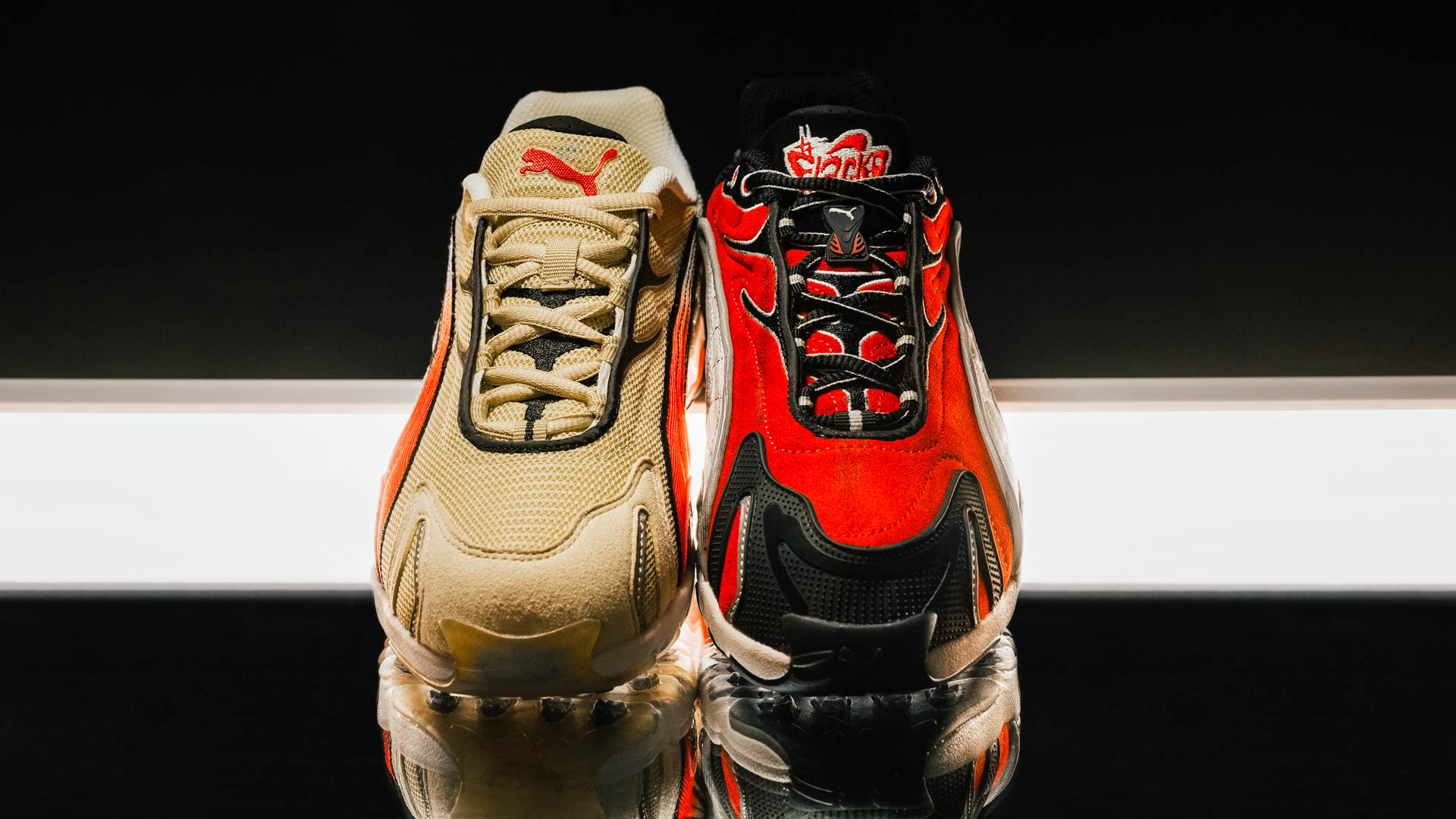 В то же время ‘Summer Melon’ переносит кроссовки в летнее настроение: нежные персиково-оранжевые тона на белом фоне делают их легкими и яркими, словно свежий фруктовый коктейль для городских улиц. Каждая расцветка передает свою историю, но обе сохраняют узнаваемый дух ASAP Rocky и ностальгический шарм оригинальной Puma Inhale OG.